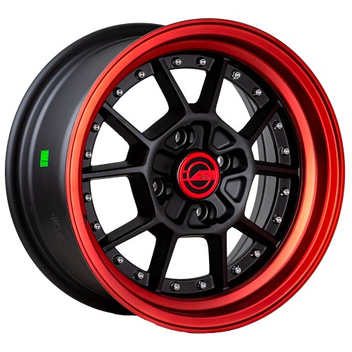 Llantas Aro 14X7 4X100 Et20 Ams Qc1748 Matte Black  Gloss Black Candy Red Lip (Set 4 Llantas)